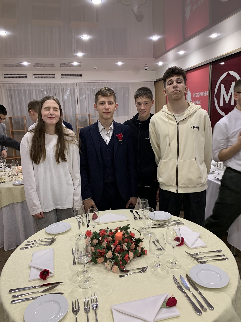 Под руководством наставников-студентов колледжа школьники выполняли практические задания: складывание салфеток и сервировка праздничного стола на 4 персоны. Ребятам предложили оформить стол в соответствии с выбранным праздником: «Новый год», «8 марта», «День бракосочетания».