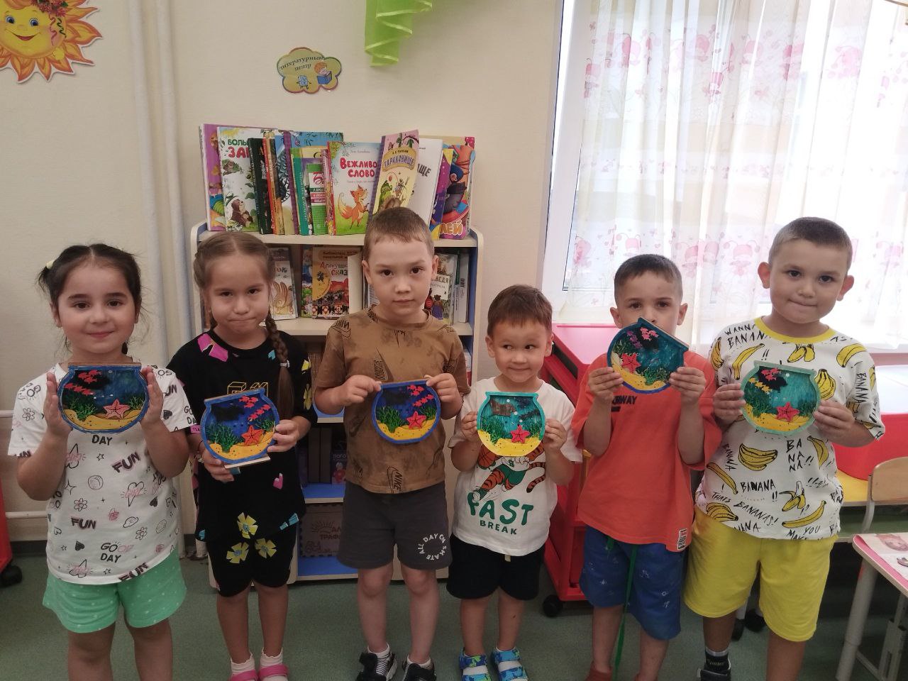 В ходе беседы дети расширили знания об особенностях и многообразии подводного мира. Далее каждый ребёнок изготовил объёмный аквариум, аккуратно склеил и раскрасил созданных морских обитателей яркими красками. Этот творческий процесс способствовал развитию мелкой моторики, формированию аккуратности и внимательности к деталям. Кроме того, воспитатели организовали беседу об экологической ответственности — важности сохранения чистоты воды и заботе о подводных экосистемах. Такая итоговая тема помогла детям понять, что беречь природу — значит сохранять красоту и жизнь в нашем мире.