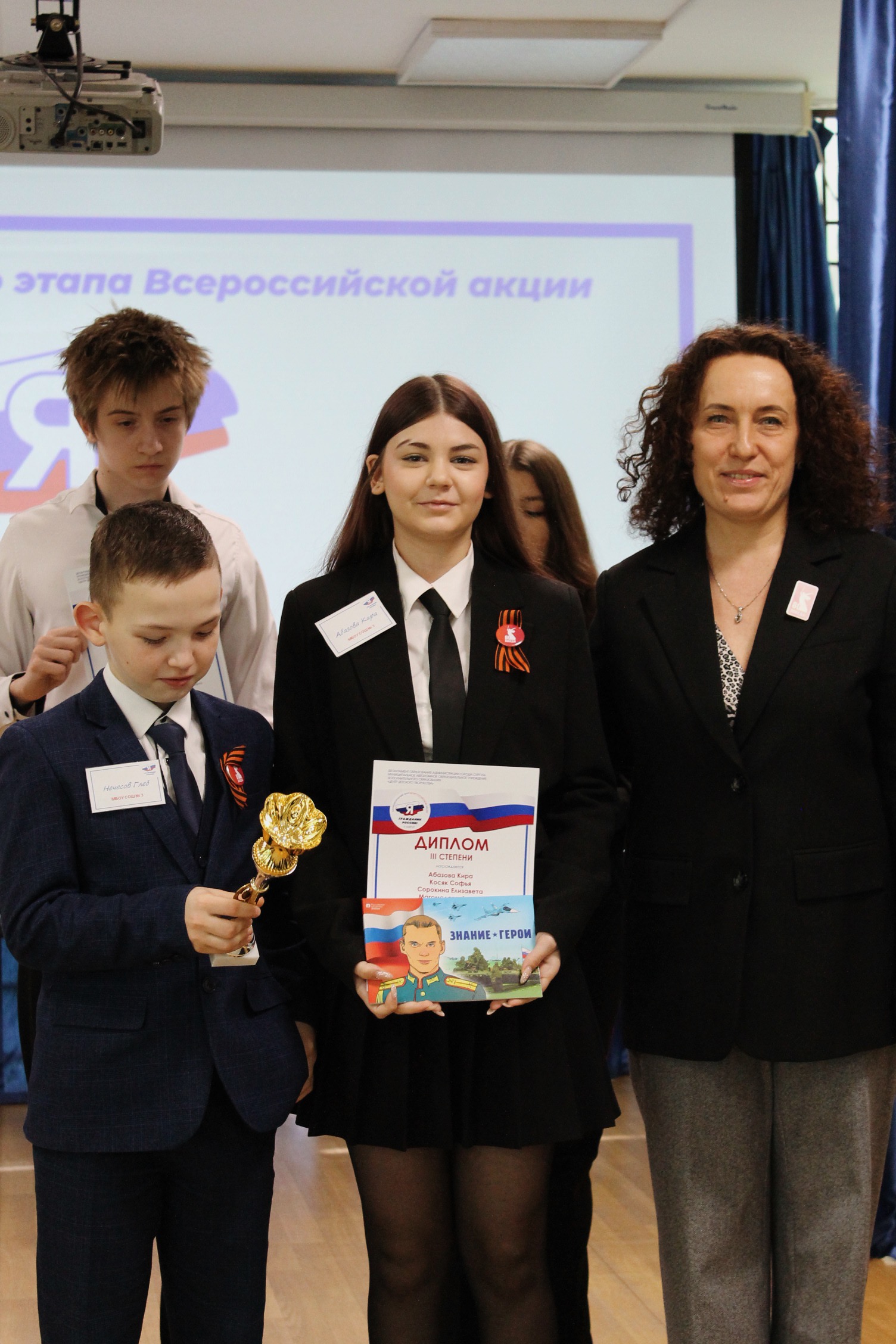 3 место заняла команда в составе: Абазова Кира, Косяк Софья, Сорокина Елизавета, Магомедова Арина, Нечесов Глеб, Белик Татьяна, руководитель: Коростелева Елена Николаевна, проект «1000 добрых открыток» школа № 3.
