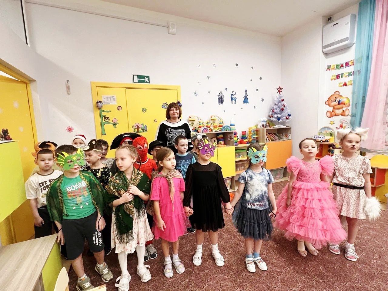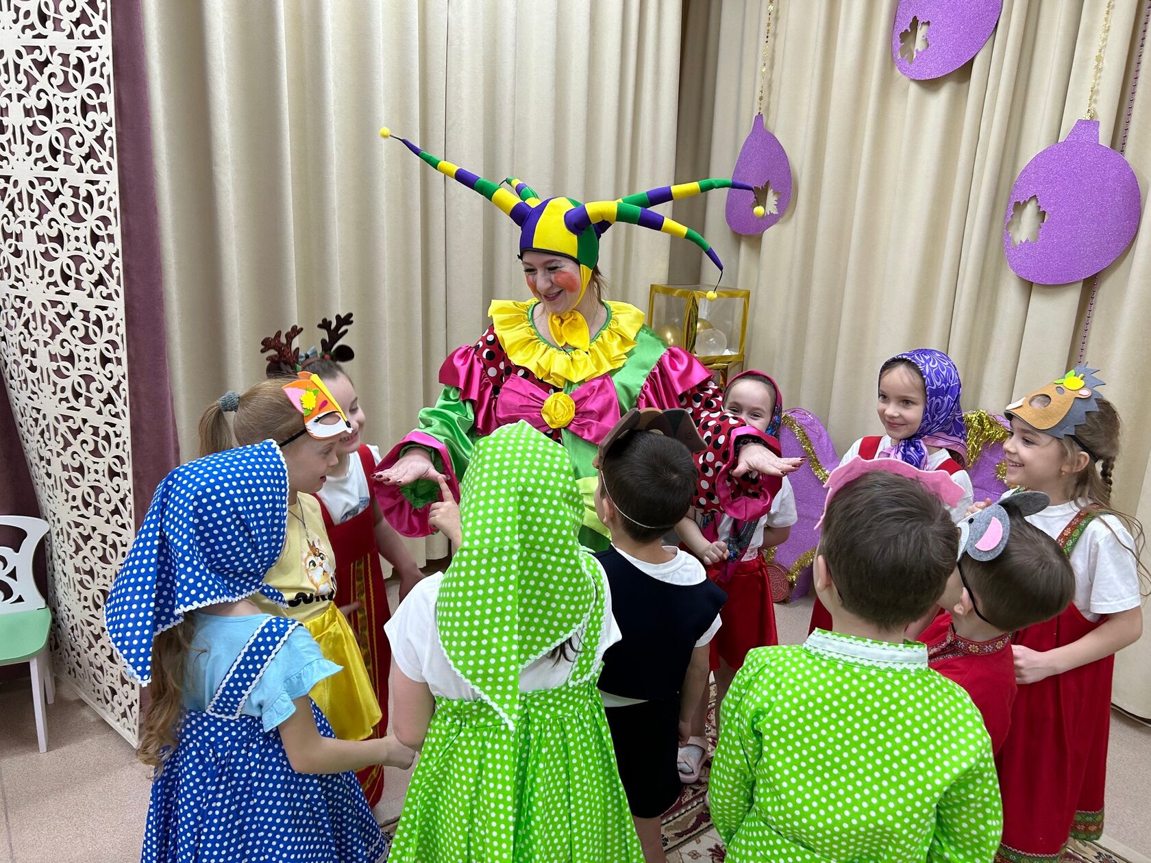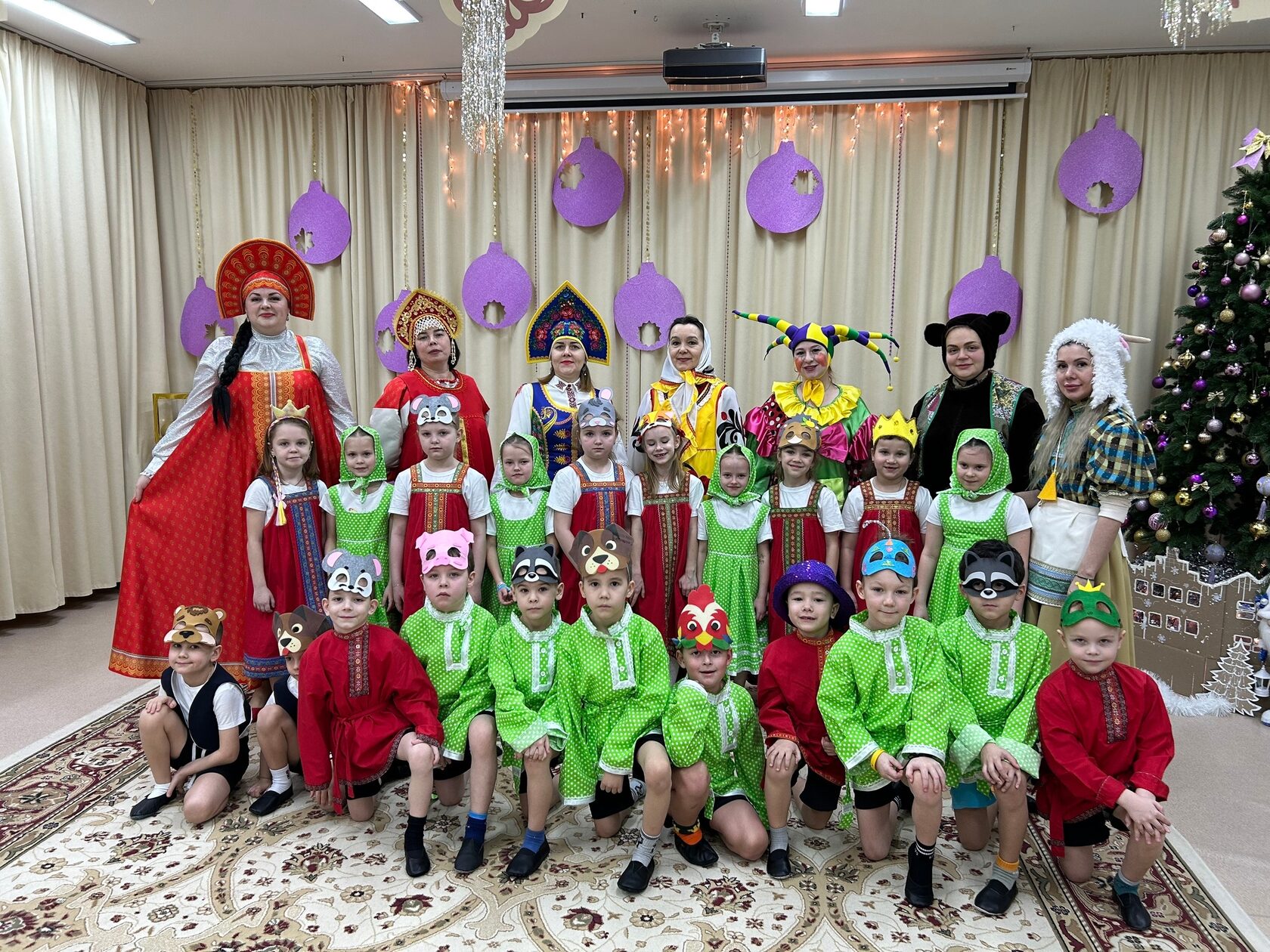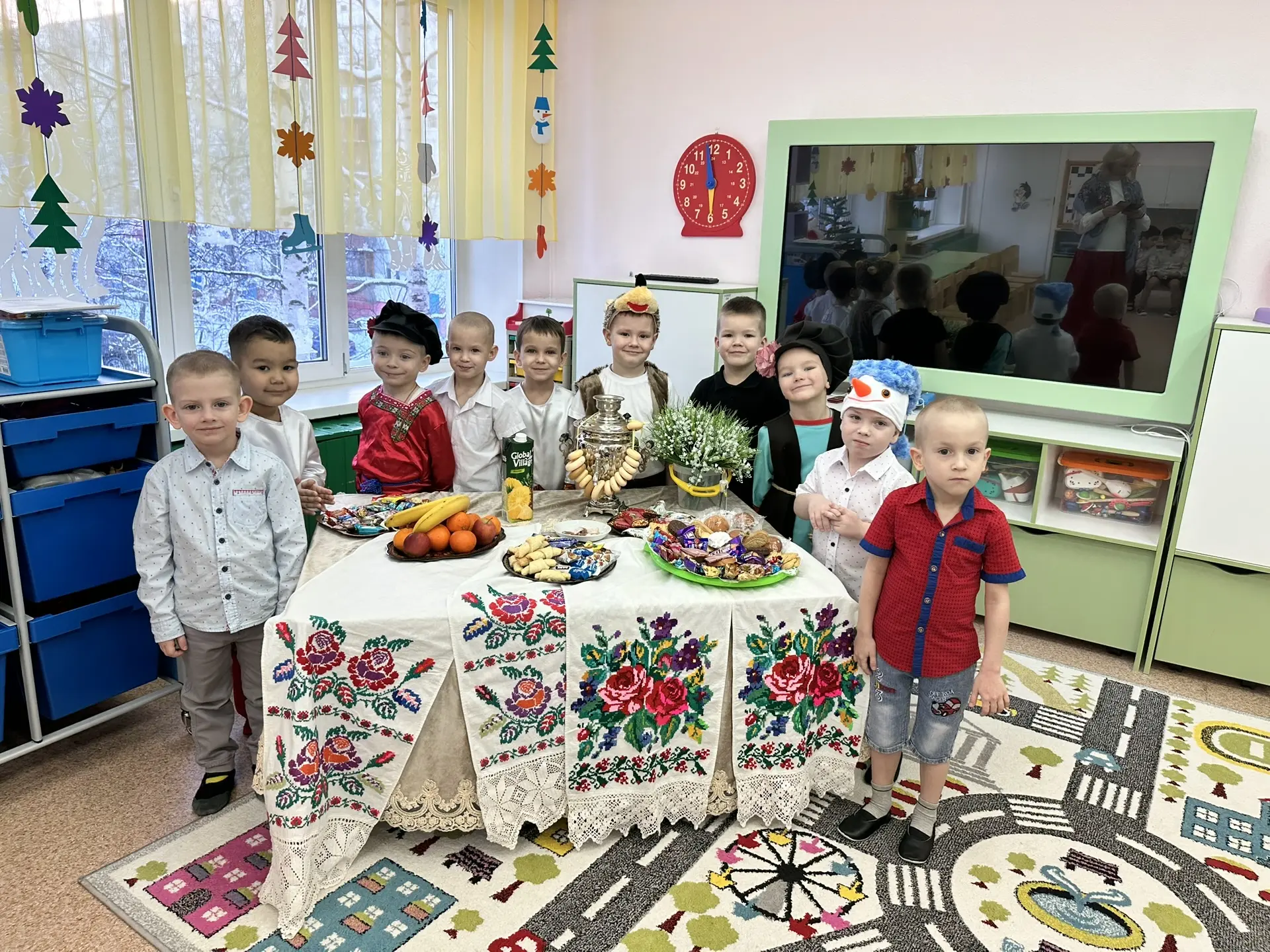 Задорный стук в дверь возвестил об их прибытии. На пороге, разукрашенные яркими лентами и масками, стояли ряженые. Звонкие голоса колядовщиков мгновенно наполнили группу весельем и ощущением приближающегося праздника.