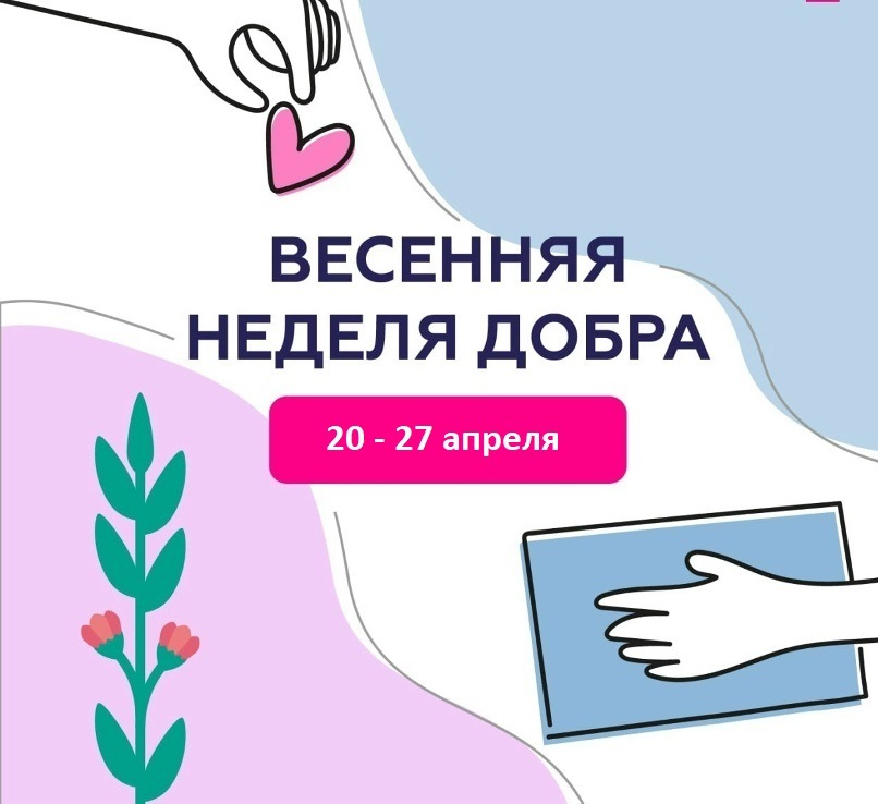 С 20 по 27 апреля 2026 года присоединяйтесь к ежегодной общероссийской добровольческой акции «Весенняя Неделя Добра» под вдохновляющим девизом: «Мы вместе создаем наше будущее!».