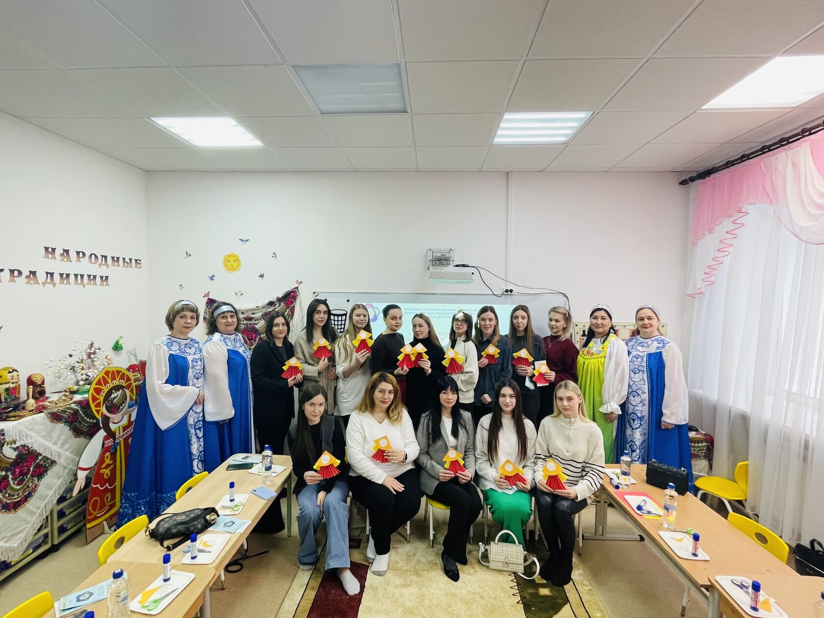 На секции «Формы взаимодействия детского сада и семьи на основе возрождения народных традиций» педагогам был представлен опыт проведения учреждением различных мероприятий, которые помогают окунуть современных родителей (законных представителей) в мир народной культуры. После чего, был организован мастер-класс «Кукла масленица», на котором педагоги познакомились с технологией изготовления объёмной композиции в технике бумагопластика.