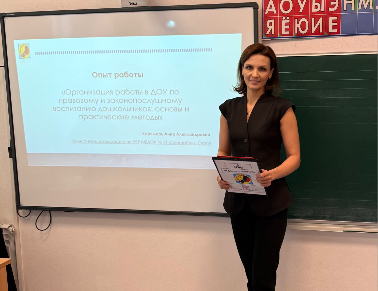 Анна Александровна представила опыт работы МБДОУ № 31 «Снегирек» и выступила с темой «Организация работы в ДОУ по правовому и законопослушному воспитанию дошкольников».
