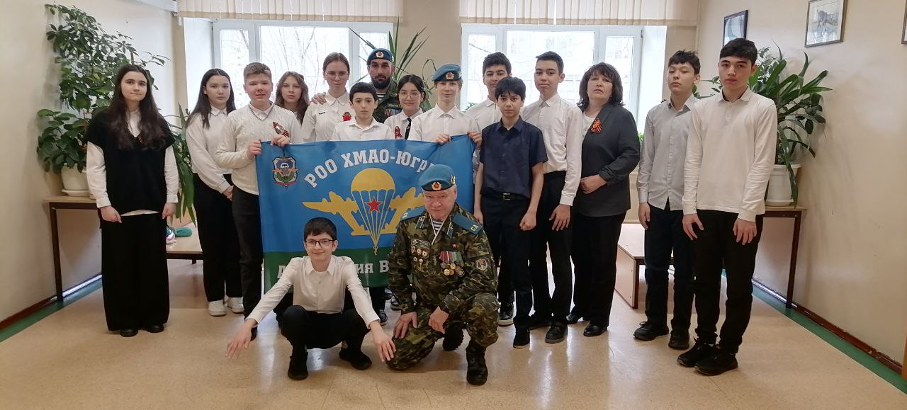 26 апреля в рамках образовательной программы для учащихся 7-х классов был проведен урок Мужества, организованный при участии Региональной Ассоциации Ветеранов ВДВ и ВСпН Югры. В мероприятии приняли участие Виктор Иосифович Царенко и Тимур Эйвазович Эйвазов, которые поделились своими знаниями и опытом с учащимися.