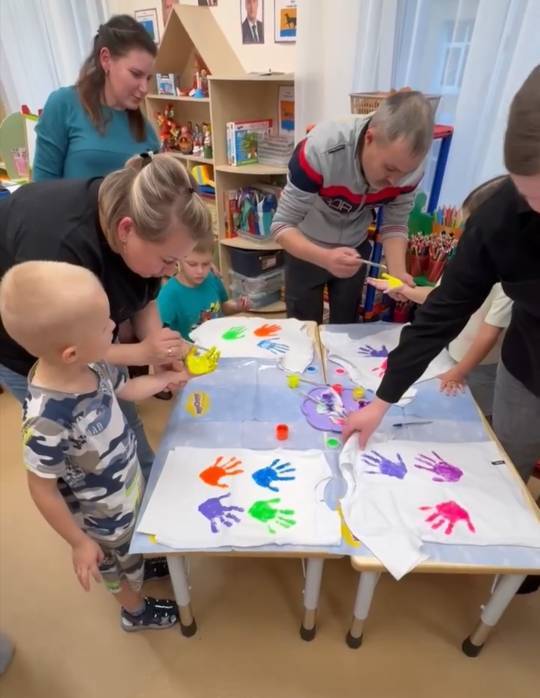 Участники мастер-класса окунулись в мир необычного искусства, где главным инструментом стали их собственные руки. Используя яркие краски, дети и родители создавали уникальные узоры на белых футболках, превращая обычные отпечатки ладоней в настоящие произведения искусства.