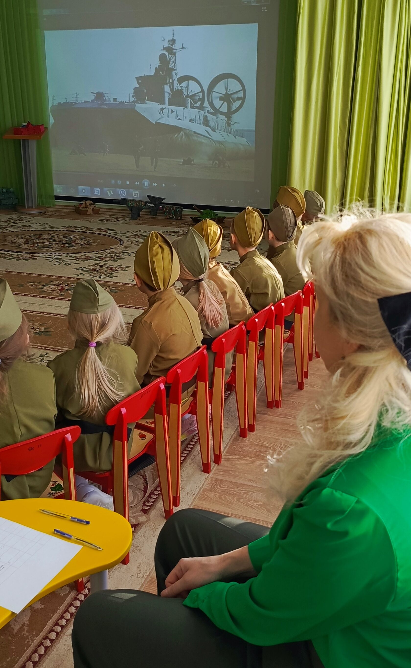 Беседа сопровождалась красочной презентацией, демонстрирующей мощь и силу российской армии. Ребята активно участвовали в обсуждении, отгадывая загадки о военной технике и отвечая на вопросы о том, какие бывают военные специальности и какие качества должен иметь военнослужащий.