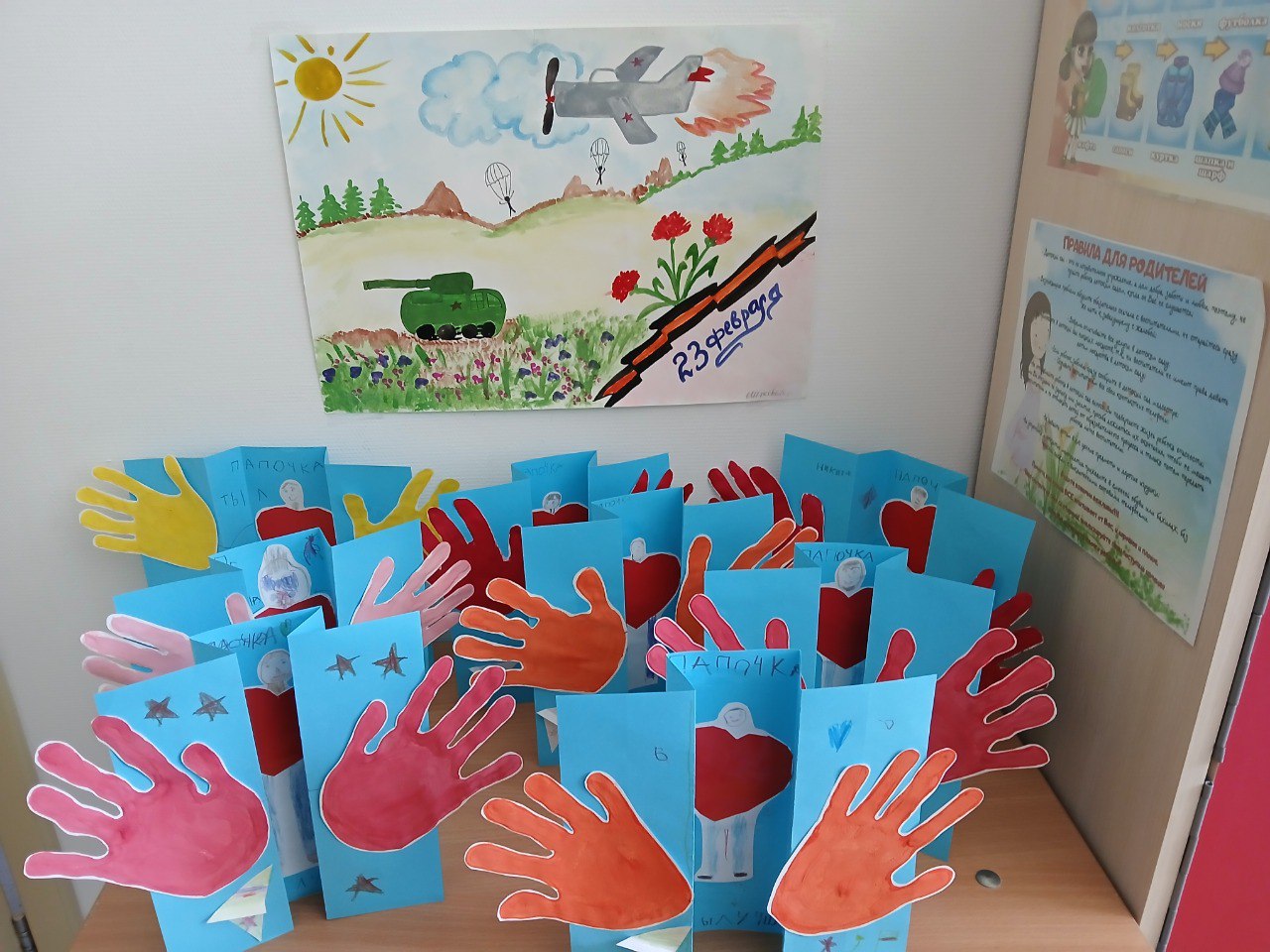 Также была организована продуктивная деятельность «Подарок для папы». Все мероприятия прошли успешно. У дошкольников сформировалось уважительное отношение к людям, служащим в армии, и чувство гордости за свою страну. Мероприятия провели педагог группы Лариса Николаевна Гостева, учитель -логопед Наталья Николаевна Захарова.