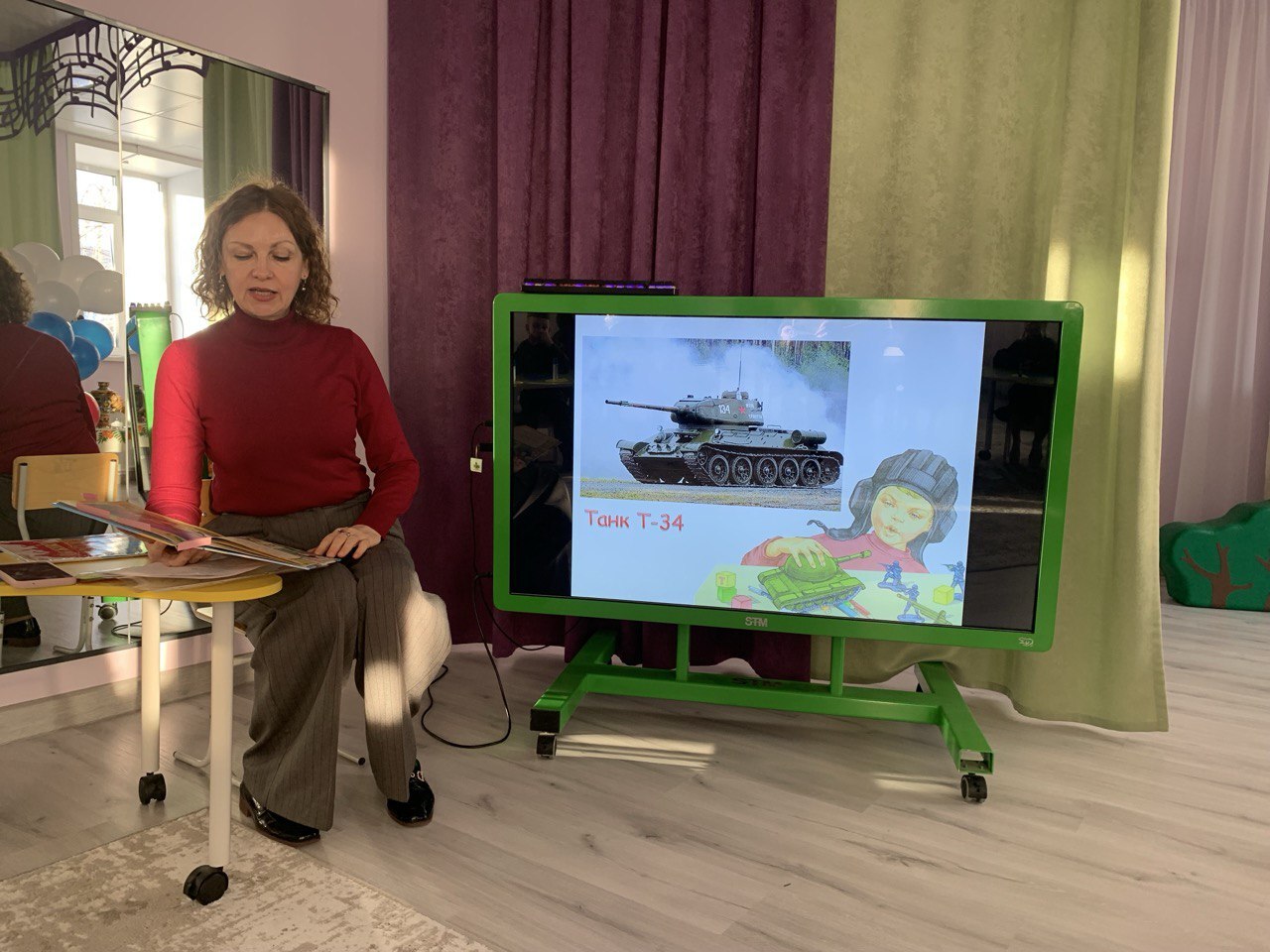 В рамках акции «Единый день чтения в Югре», в преддверии празднования Дня защитника Отечества состоялась встреча воспитанников МБДОУ № 47 «Гусельки» с ведущим библиотекарем Городской библиотеки № 3 им. П. А. Суханова Юлией Викторовной Гладковой. Юлия Викторовна рассказала детям о различных родах войск, военной технике и значении воинской службы.