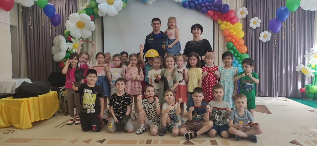 Дети закрепили правила пожарной безопасности и действия в случае возникновения пожара, правила перехода по льду и опасности при нахождении вблизи водоемов во время весеннего паводка. Михаил Юрьевич продемонстрировал порядок экипировки, показал, как позвонить в пожарную службу, а все желающие смогли примерить пожарный шлем! В конце мероприятия Михаил Юревич вручил детям памятные подарки — георгиевские ленточки. Ребята были в восторге!
