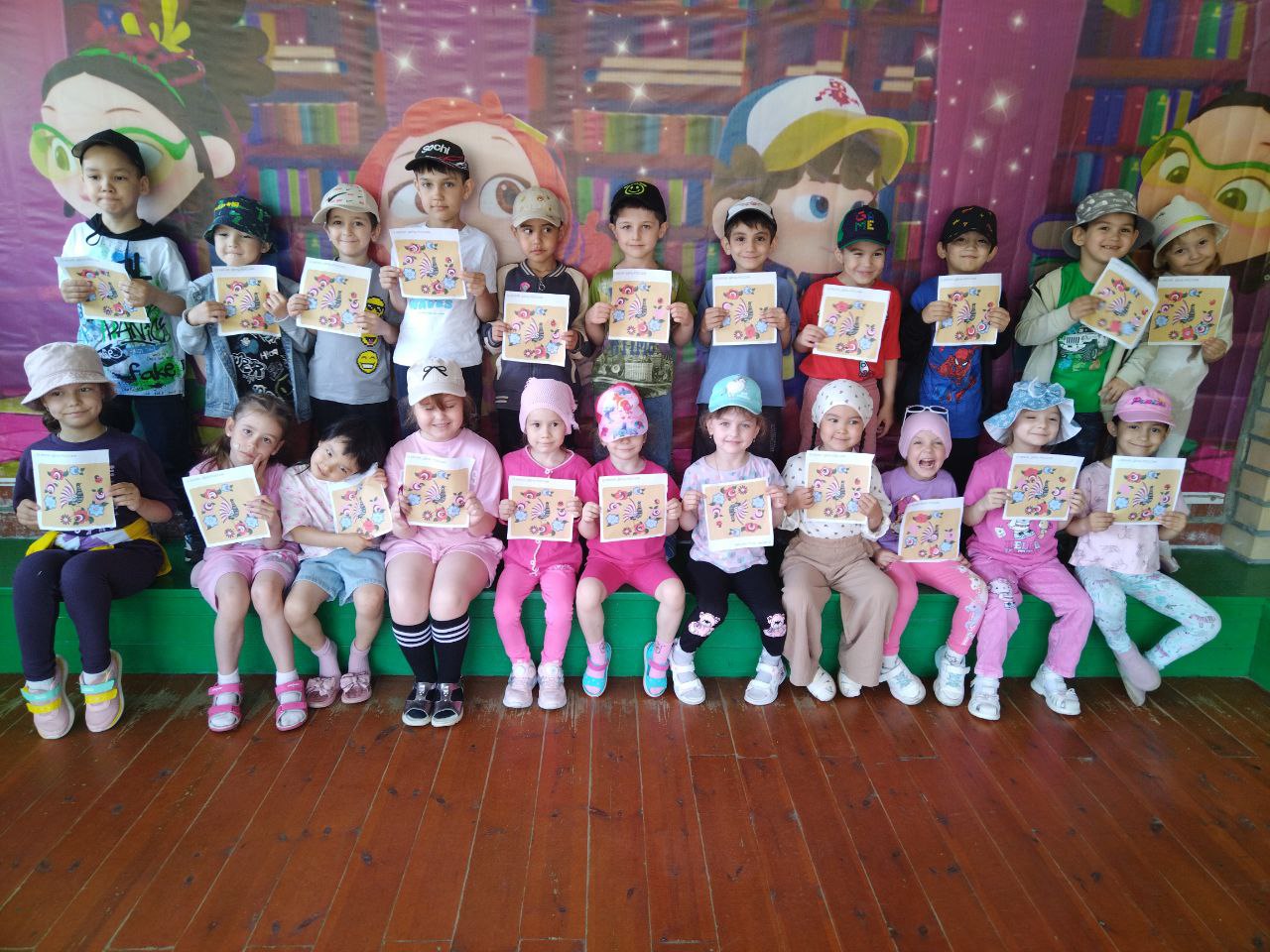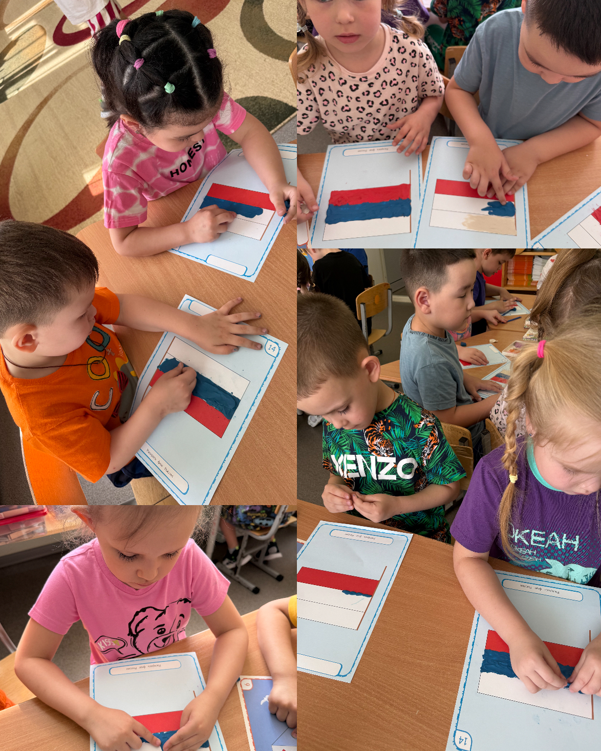 Одной из самых ярких работ стала коллективная аппликация «Моя Россия». Кроме того, юные художники «Мимозы» создали большой и красочный праздничный плакат, посвященный Дню России. На нём дети изобразили свои представления о Родине. Плакат получился очень ярким и содержательным, став настоящим украшением группы.